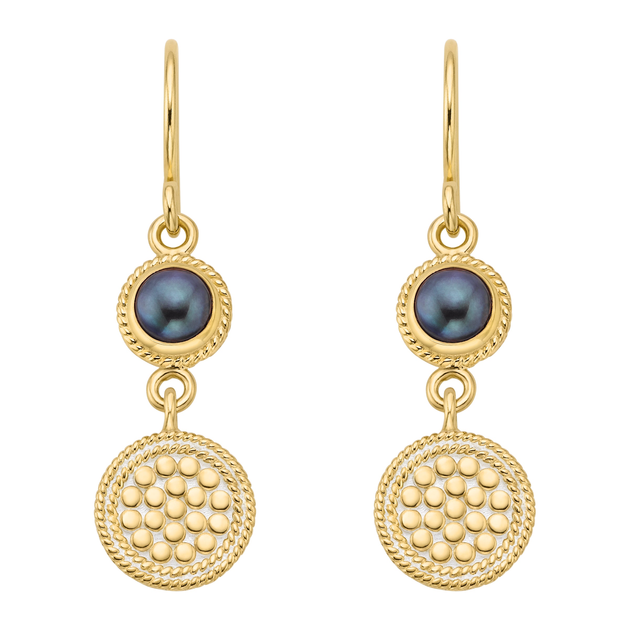 A beautiful pair of blue pearl earrings, combined with the iconic Anna Beck dotted disc, set in 18k gold. A timeless pair of earrings from Anna Beck that will elevate any look.
