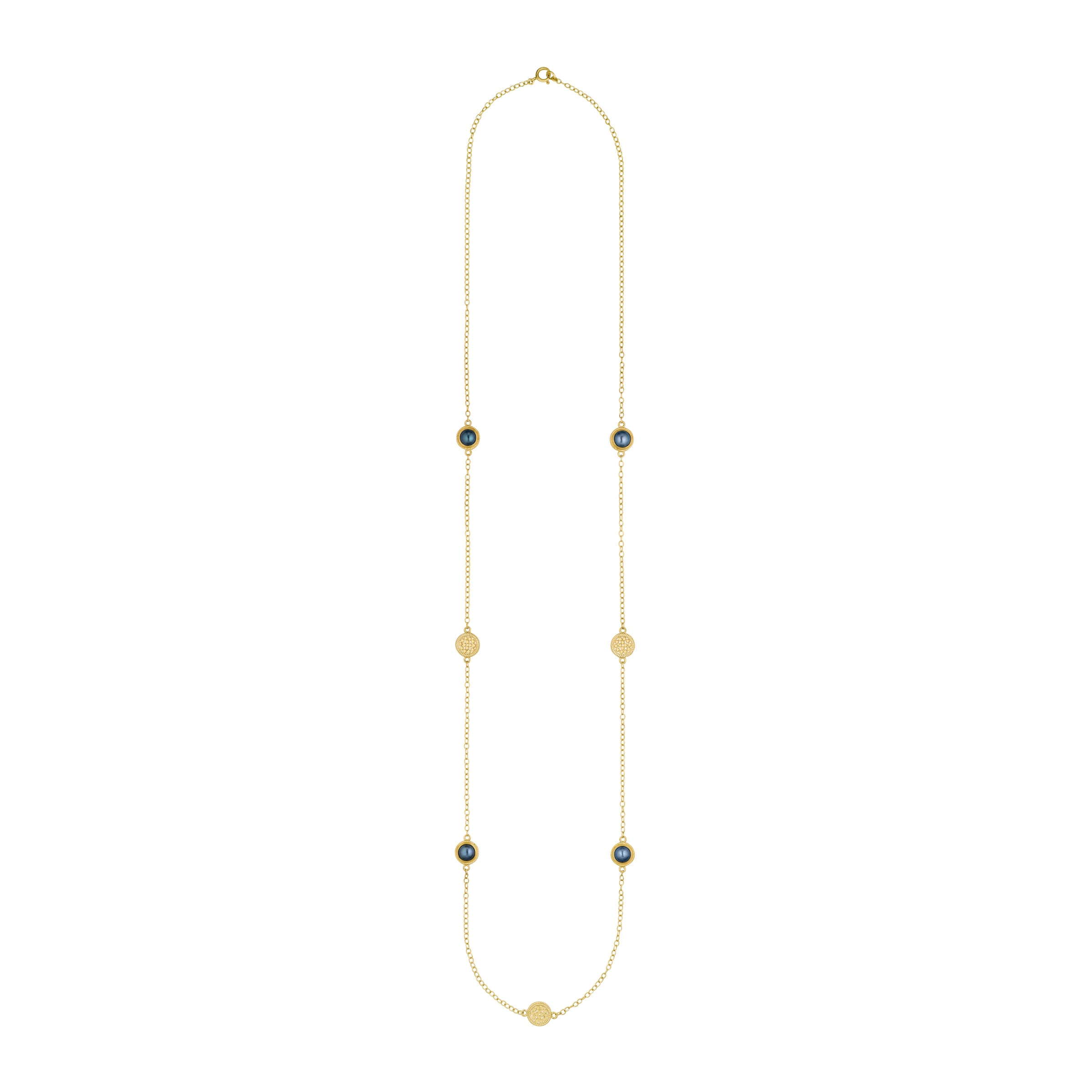 An iconic necklace design from Anna Beck with blue pearls. A stunning piece from Anna Beck.