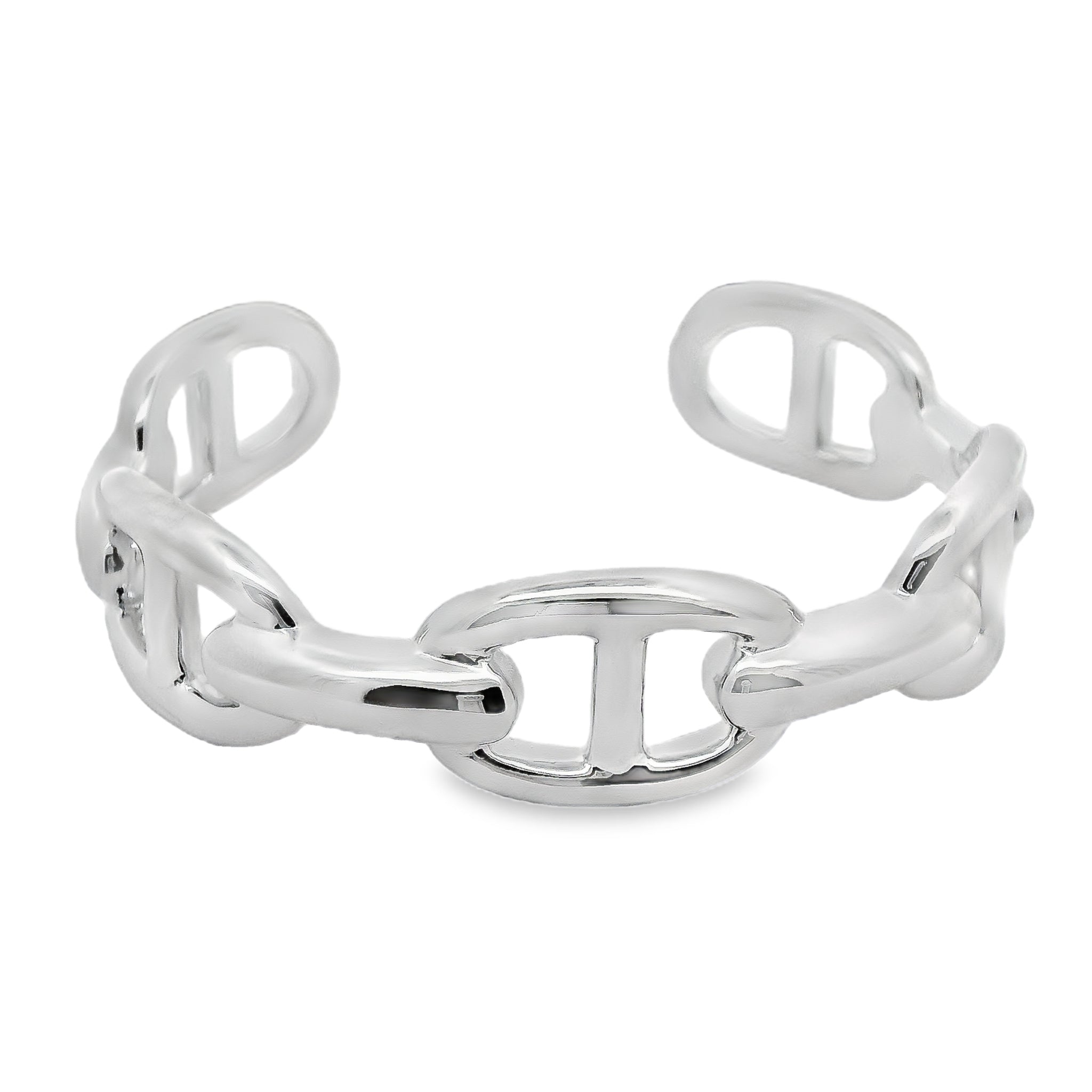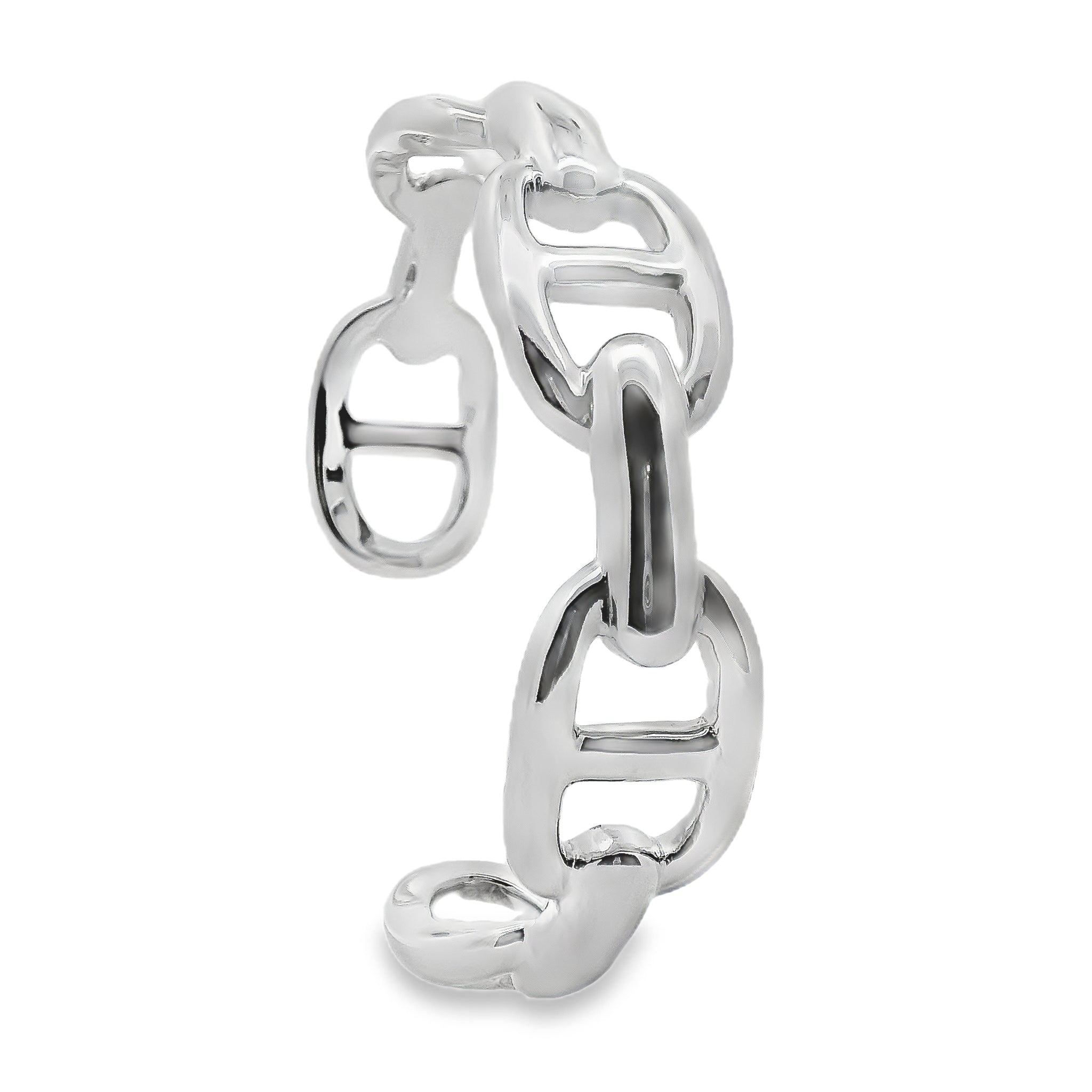 Solid Silver bangle is hand-selected by Rebecca for our solid silver collection. The sleek cuff is adorned with a loop detail, tying your look together alone or as part of a stack.