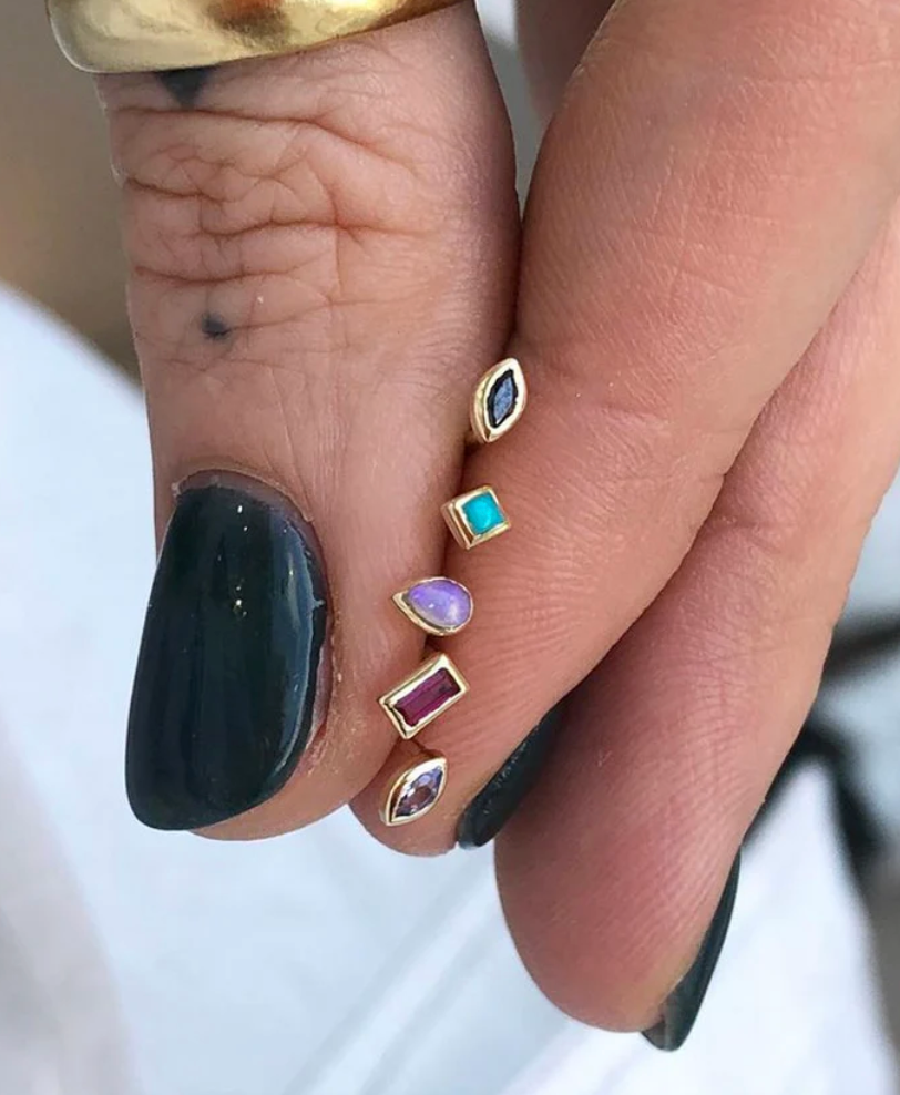 The Mini Claw Set Bezel Princess Gemstone Studs. Claw set, the gemstones are surrounded in 9ct yellow gold, and are a timeless addition to your ear story. Available in screwback 5mm.