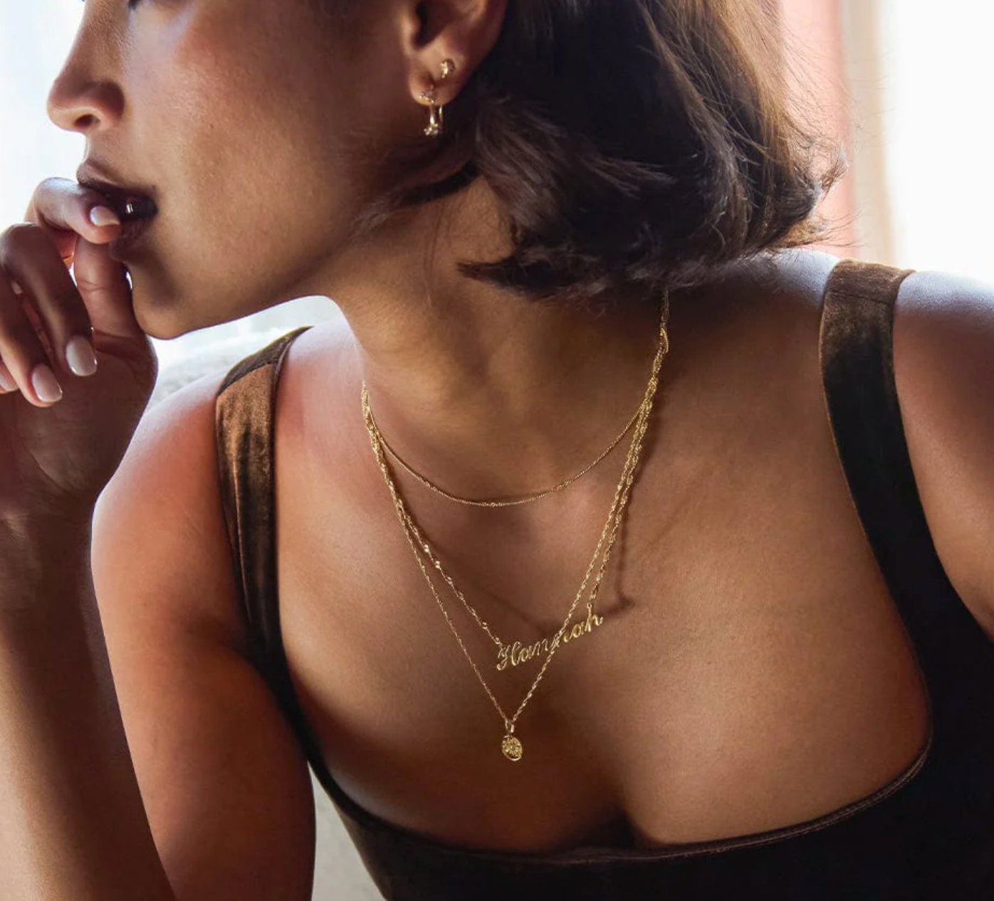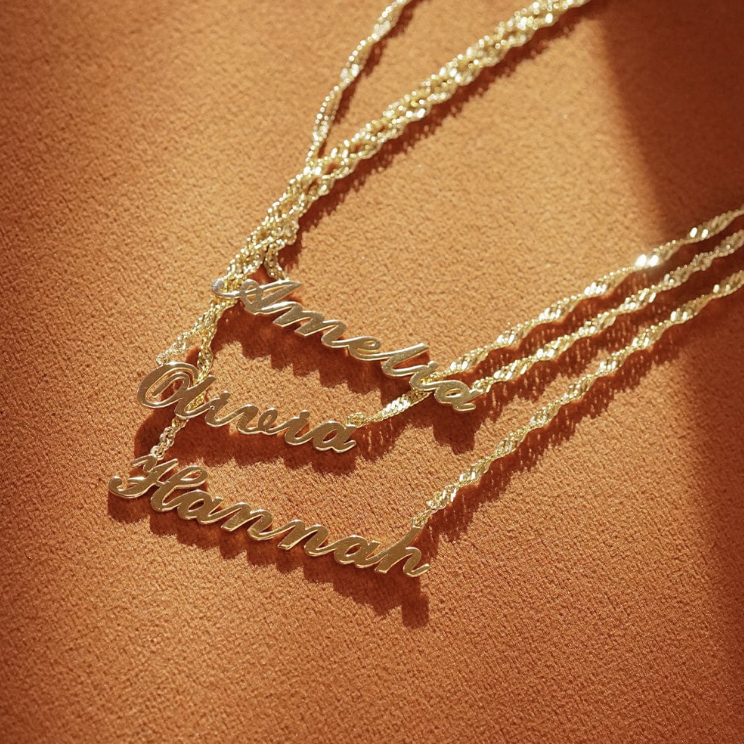 The perfect homage to the iconic 'Carrie Necklace', made in 100% recycled sterling silver and hung on a twisted chain. Whether it's a name, date, place or word, make it uniquely yours and personalise to your taste.